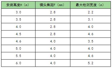 1) 根據現場安裝高度進行鏡頭焦距選型,3.0-4.5米需選擇2.8mm型號,4.5-6.0米需選擇4.0mm型號。