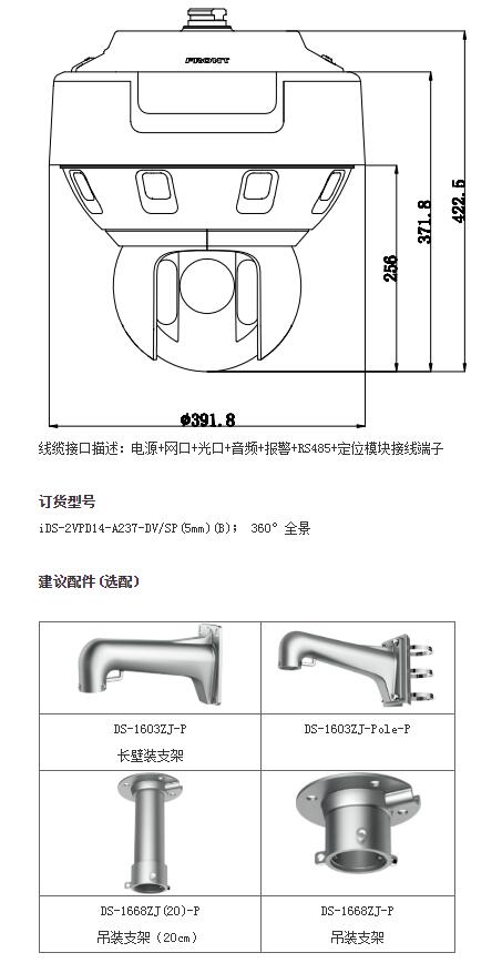 星光級180°全景一體式網絡高清紅外智能球機(iDS-2VP812-A237-DV/SP(5mm)(B))